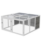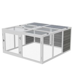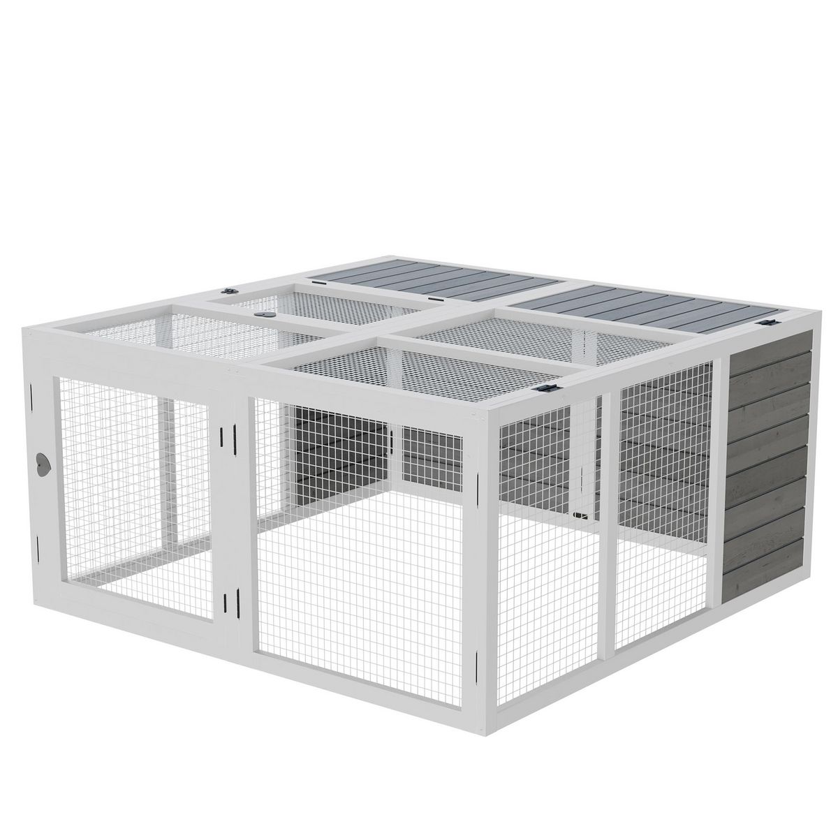 Clapier de sol enclos extérieur 2 portes verrouillables toit pliant ouvrant fil métallique bois sapin pré-huilé peint gris blanc