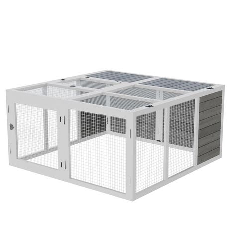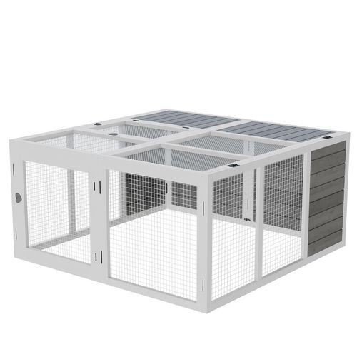 Ce superbe clapier à lapin de sol équipé de 2 portes verrouillables et d'un toit ouvrant pliable avec partie couverte vous permettra de protéger et voir grandir votre lapin dans les meilleurs conditions. Caractéristiques : - Clapier style contemporain bicolore gris et blanc très élégant- Offrez un
