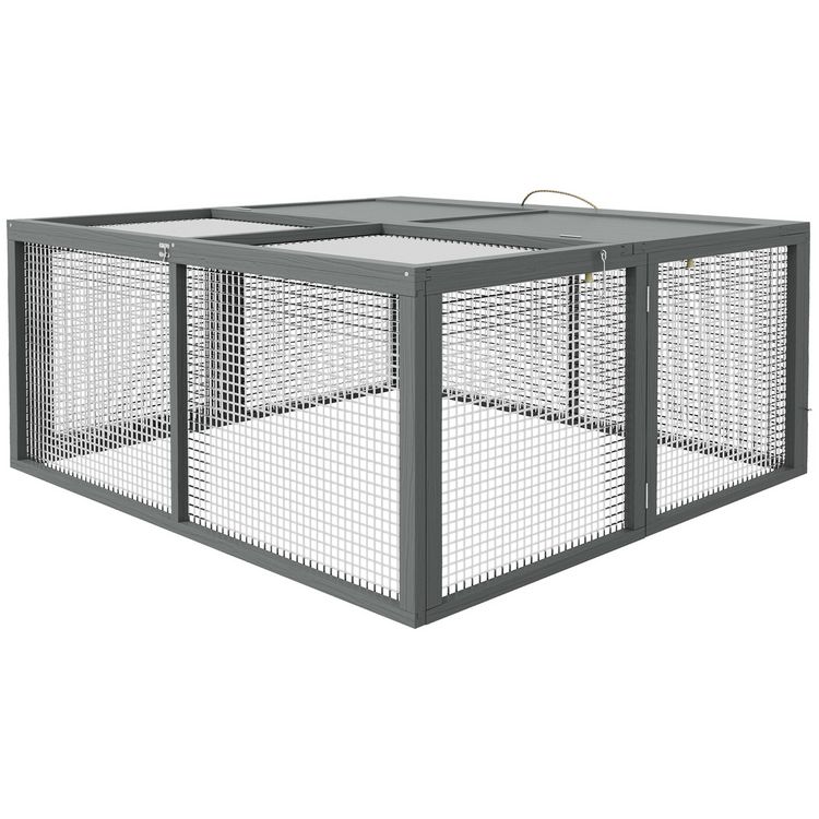 Clapier pliable avec poignée - cage à lapin - toit ouvrant, porte - 110 x 105 x 50 cm - acier bois gris