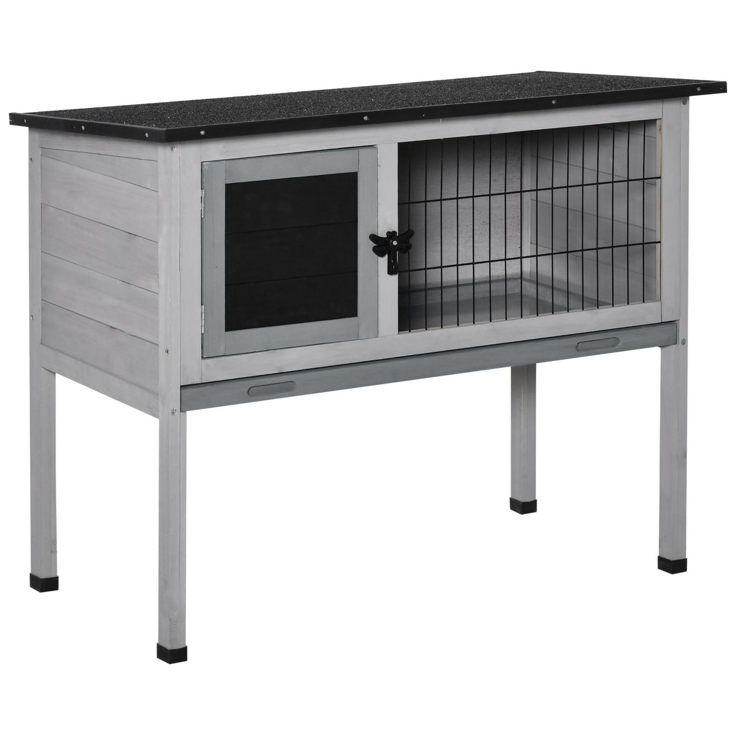 Clapier sur pied cage à lapin avec niche intérieure plateau excrément coulissant porte verrouillable toit ouvrant bois sapin gris