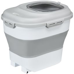 Conteneur à croquettes pour chiens et chats pliable 25L - roulettes, tasse, bol, cuillère - gris
