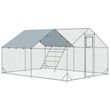 Enclos poulailler 12 m² espace couvert - perchoir, mangeoire à suspendre, porte, bâche - 4 x 3 x 1,95 m - acier gris