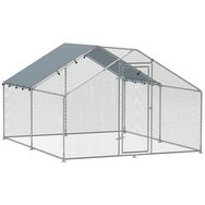 Enclos poulailler chenil 10,2 m² - parc grillagé dim. 3L x 3,4l x 1,9H m - espace couvert - acier galvanisé