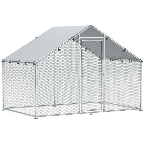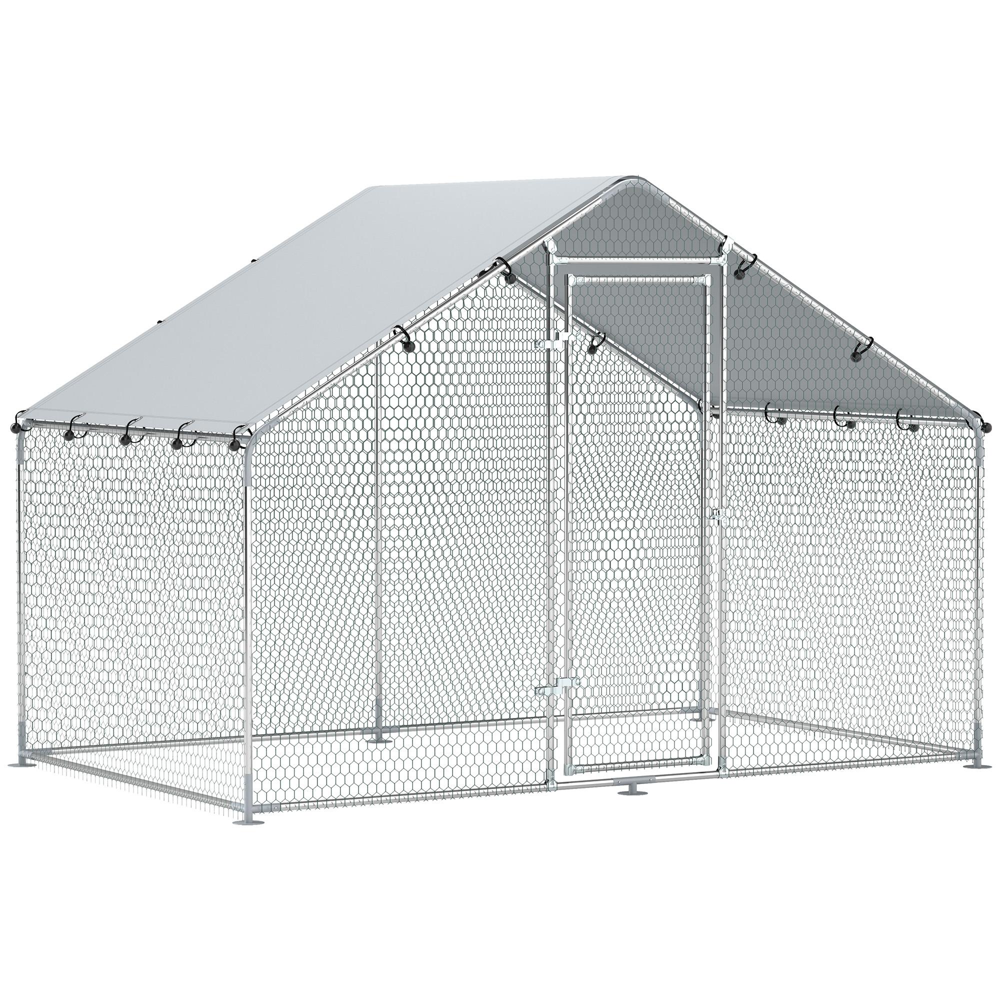 Enclos poulailler chenil 5,1 m² couvert - parc grillagé dim. 3L x 1,7l x 1,9H m - porte - acier galvanisé oxford gris