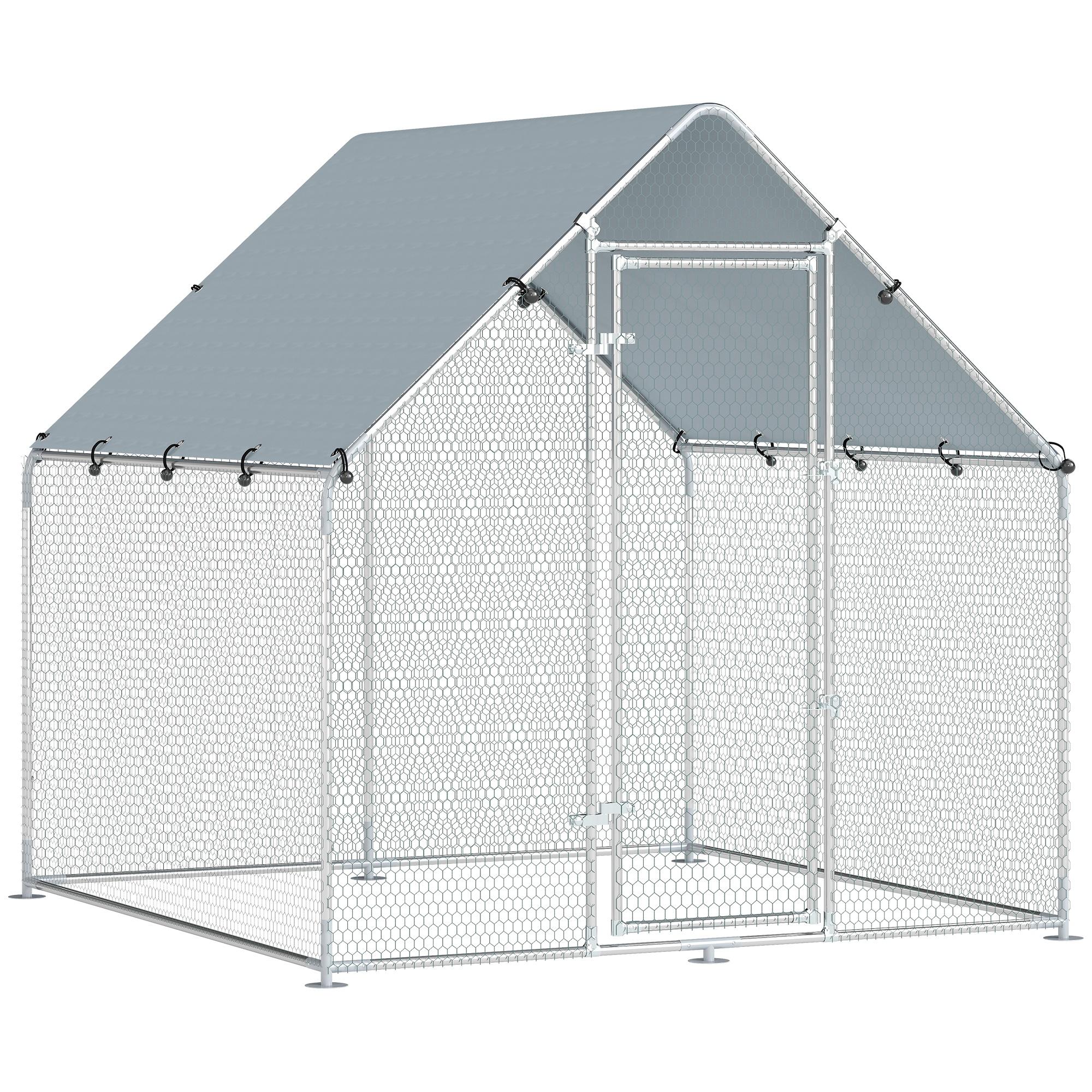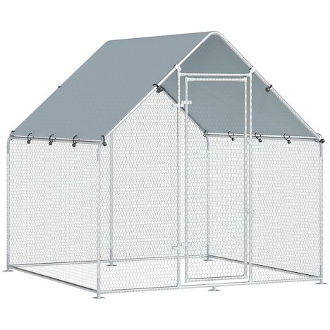 Découvrez l'enclos pour poules PawHut ! Spacieux et robuste, il est en acier galvanisé et grillage plastifié, résistant aux intempéries. Doubles verrous pour sécurité, hauteur pratique pour entretien, toit imperméable en polyester 420D contre pluie et UV. Habitat sûr et confortable pour 4 à 6 poules.