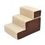 Escalier pour chien animaux rampe 2/3 marches déhoussable dim. 54L x 40l x 39H cm mousse haute densité tissu peluche courte marron crème