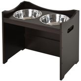 Gamelle double chien chat porte-gamelles surélevé dim. 54L x 31l x 47H cm 2 gamelles acier inox. incluses MDF brun foncé
