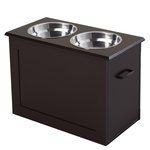 Gamelle double chien chat Porte-gamelles surélevé dim. 60L x 30l x 41H cm 2 gamelles poignées coffre MDF chocolat