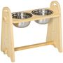 Gamelle double chien chat - porte-gamelles surélevé - hauteur, inclinaison réglables - 2 gamelles acier inox. incluses bois pin