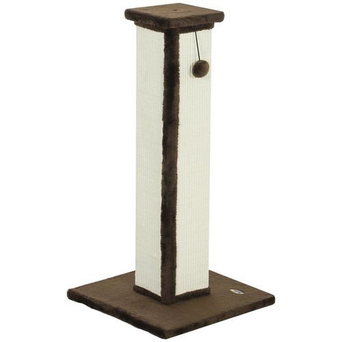Griffoir tour pour chat H.81 cm - poteau à griffer avec jeu balle suspendue - peluche marron sisal naturel