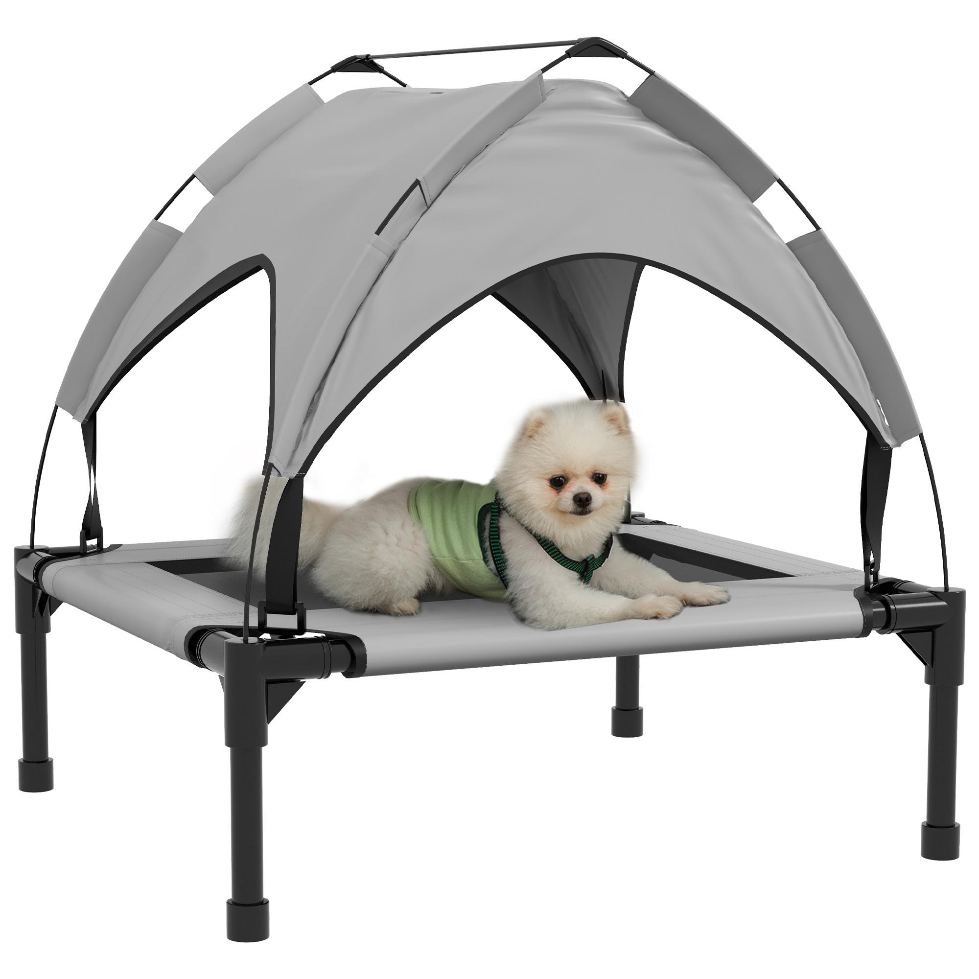 Lit chien sur pied avec voile ombrage - sac de transport - gris