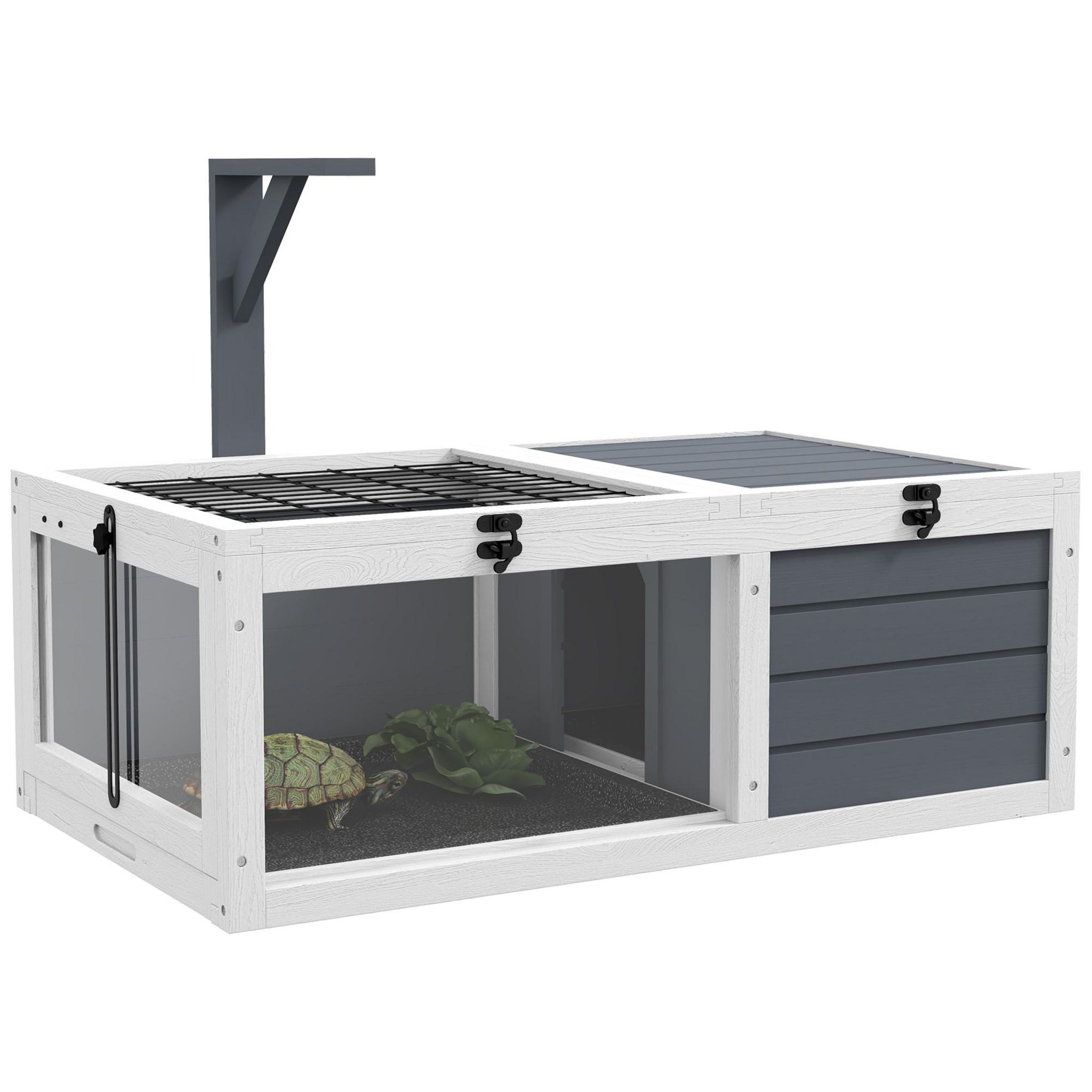 Maison enclos cage pour petit animal tortue avec 2 espaces bois gris