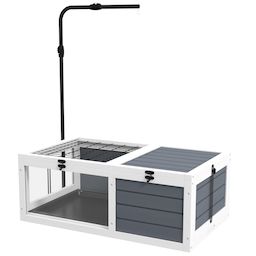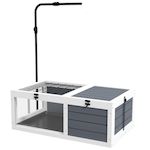 Maison enclos cage pour tortue petit animal avec 2 espaces support lampe réglable bois gris blanc