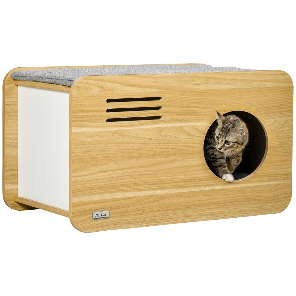 - Toit équipé d'un coussin amovible lavable, pan latéral avec grattoir également amovible en sisal naturel idéal pour que votre chat ou chaton fasse ses griffes