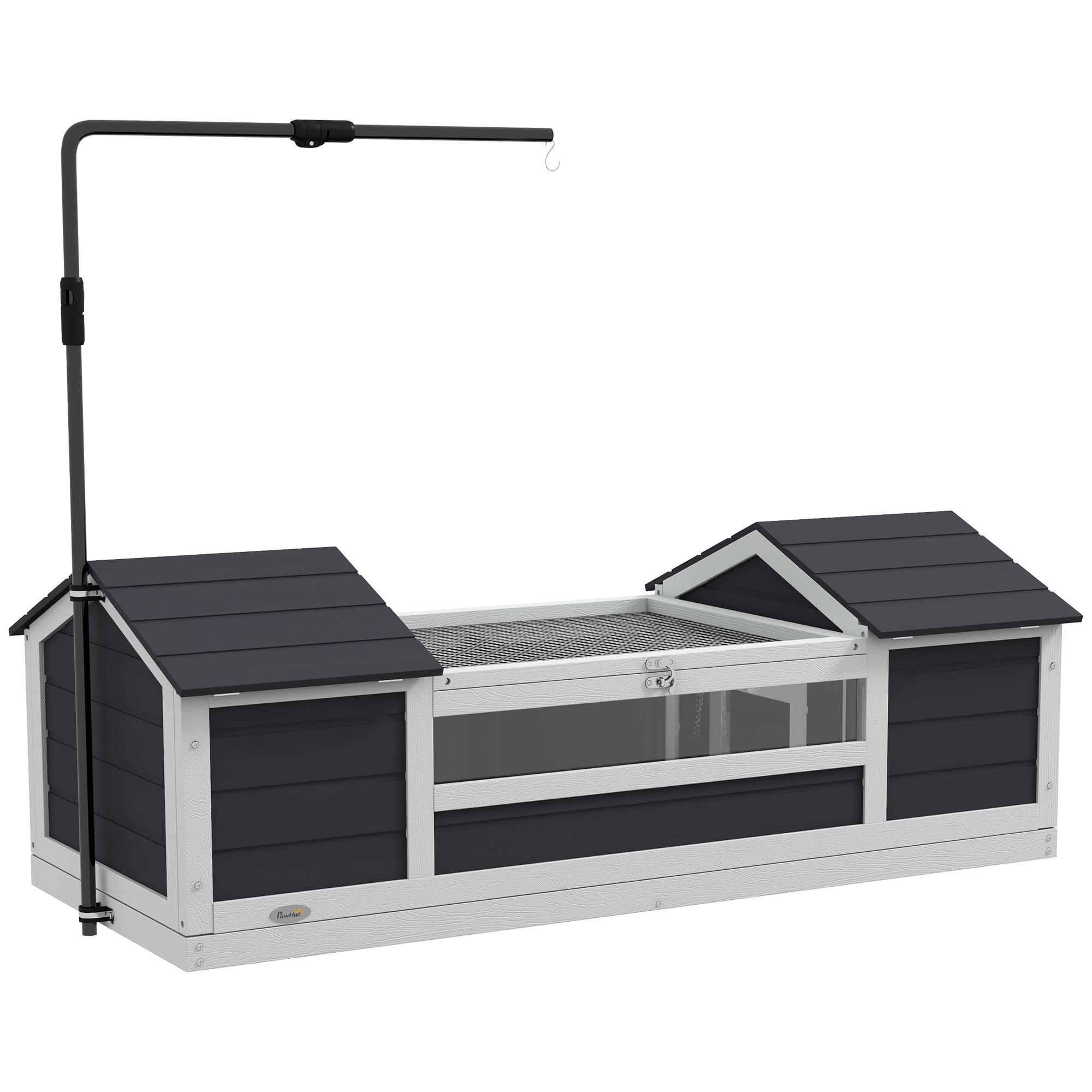 Maison tortue terrestre extérieure - enclos tortue 2 niches, support lampe réglable, toit ouvrable - acrylique bois gris