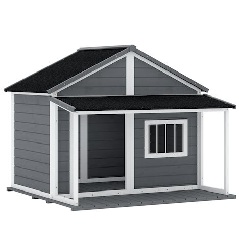 Offrez à votre chien un véritable foyer, même à l'extérieur, avec la grande niche à porche PawHut. Cette niche style cabane comprend un vaste salon et une terrasse, offrant à votre animal un espace pour se reposer tout en profitant du soleil. La niche est équipée d'une porte et de fenêtres latérales pour une circulation d'air optimale. Le toit en asphalte protège votre chien contre les intempéries, qu'il pleuve ou qu'il fasse soleil. Donnez à votre animal une maison élégante avec PawHut.