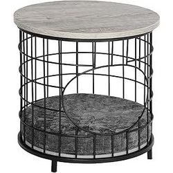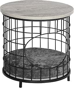 Ce panier pour chat table basse 2 en 1 style industriel cosy fourni avec un coussin amovible permettra à votre chat de se reposer en toute tranquillité. Son plateau rond en panneaux de particules aspect bois gris pourra faire office de petite table basse d'appoint idéale pour déposer un ou 2 verres,