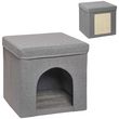 Panier chat grattoir pouf pliable 3 en 1 - coussin amovible lavable, grattoir - MDF tissu aspect lin gris
