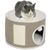 Panier niche griffoir grattoir 4 en 1 - 2 coussins, pompon - sisal naturel peluche crème café
