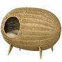 Panier pour chat en résine tressée imitation rotin grand confort dim. 55L x 36l x 42H cm coussin moelleux beige inclus