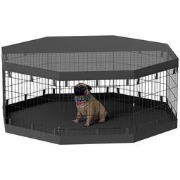 Explorez le plaisir des jeux avec le parc pour chiens PawHut, doté d'un fond imperméable, couvercle anti-UV, et porte sécurisée. Idéal pour les chiens de petite et très petite taille, permettant un ébat libre et sécurisé.
