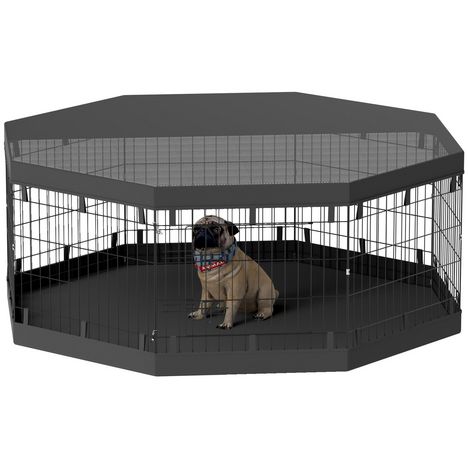 Parc enclos chien modulable intérieur 8 panneaux pliables - porte, bâche bas haut - acier noir
