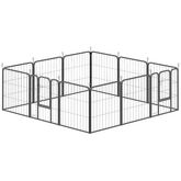 Parc enclos chien modulable pliable 12 panneaux porte verrouillable acier époxy noir
