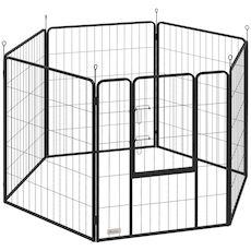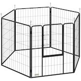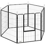 Explorez l'enclos pour chien extérieur PawHut, avec six panneaux modulables pour différentes configurations comme un rectangle ou L. Sécurisé et spacieux, avec porte pratique, il est idéal en intérieur et extérieur. Se replie pour un rangement facile, parfait pour chiots et petits chiens.Caractérist