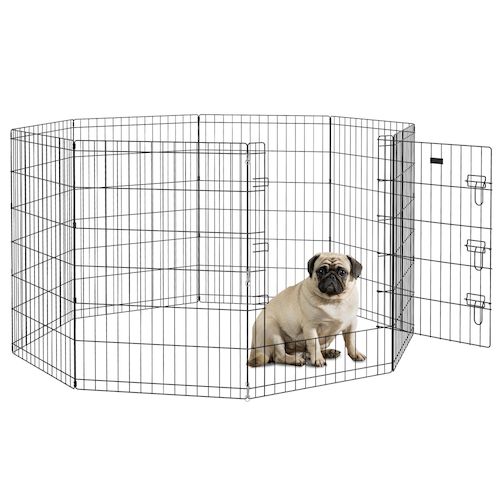 Parc enclos modulable chien - porte verrouillable, 8 panneaux 61 x 91 cm - métal noir