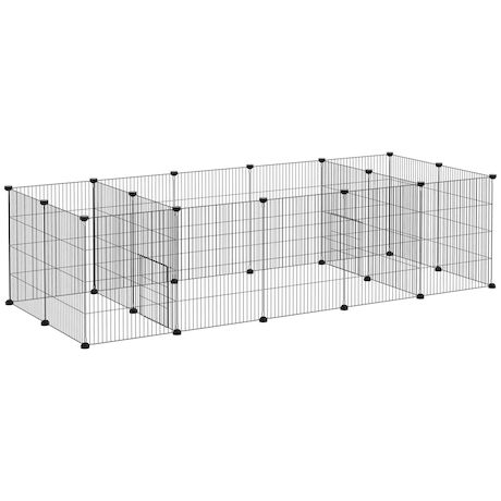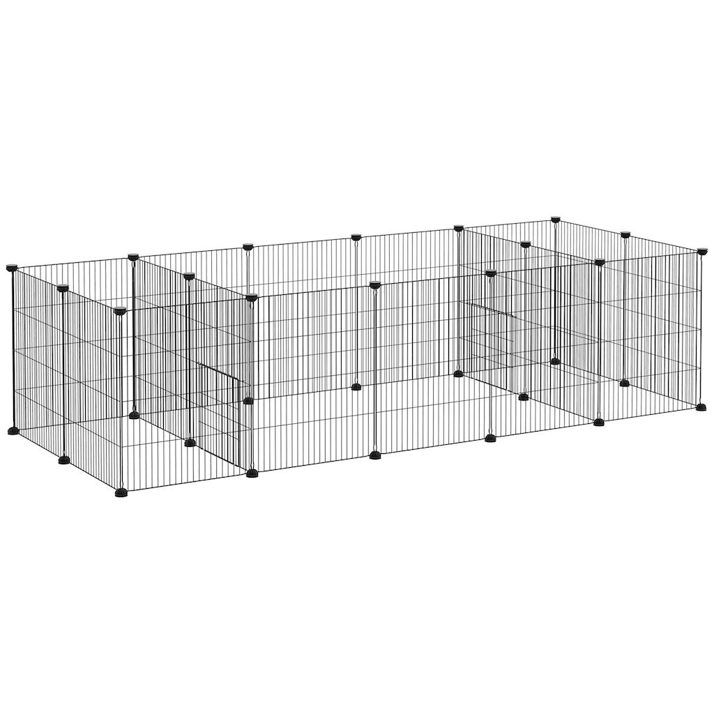 Parc enclos modulable petits animaux lapins rongeurs chiots - 18 panneaux en fil d'acier - 2 portes - 175L x 70l x 45H cm - noir