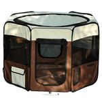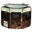 Parc enclos pliable chien chat Ø 117 x 76H cm - 2 portes, 2 poches, sac transport - acier Oxford marron beige