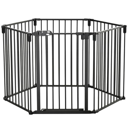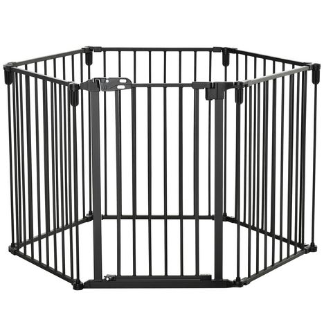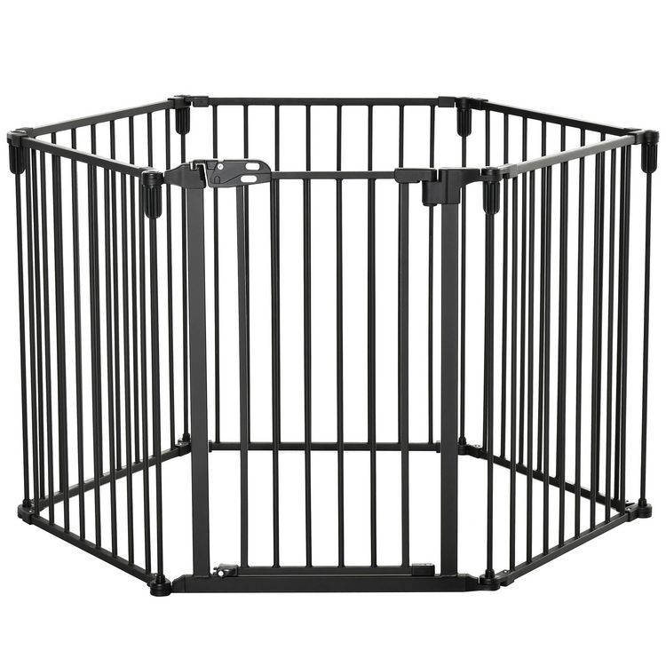 PawHut Barrière de sécurité - parc enclos chien modulable pliable - porte verrouillable - 6 panneaux acier et PP - dim. 362,5L max. x 76H cm noir