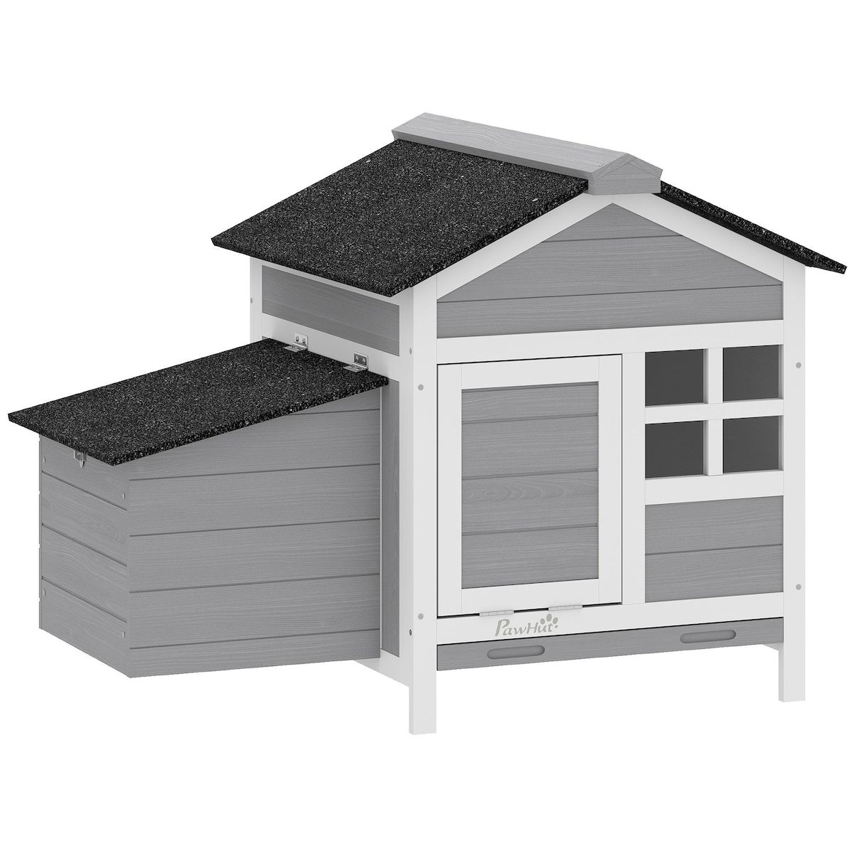 Poulailler en bois sur pieds toit et pondoir bitumés noir blanc gris