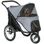 Poussette buggy chien 3 roues pliable pneus gonflables - sac, coussin, laisse intégrés - gris