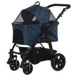 Poussette buggy pliable chien chat amortisseurs panier de rangement 2 attaches sécurité housse réglable acier Oxford bleu foncé