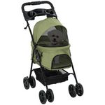 Poussette buggy pliable chien chat panier rangement porte-gobelets tissu 300D Oxford imperméable 4 roues vert