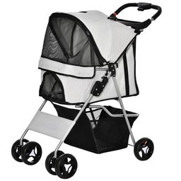Poussette buggy pour chiens 75L x 46l x 94H cm pliable imperméable tissu 600D Oxford 4 roues gris