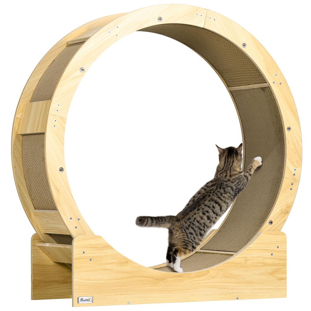Roue d'exercice pour chat - frein, grattoirs - dim. 91L x 33,5P x 94H cm - aspect bois naturel