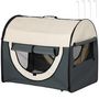 Sac de transport pliable chien chat - poignée, porte, 3 fenêtres, coussin - gris beige