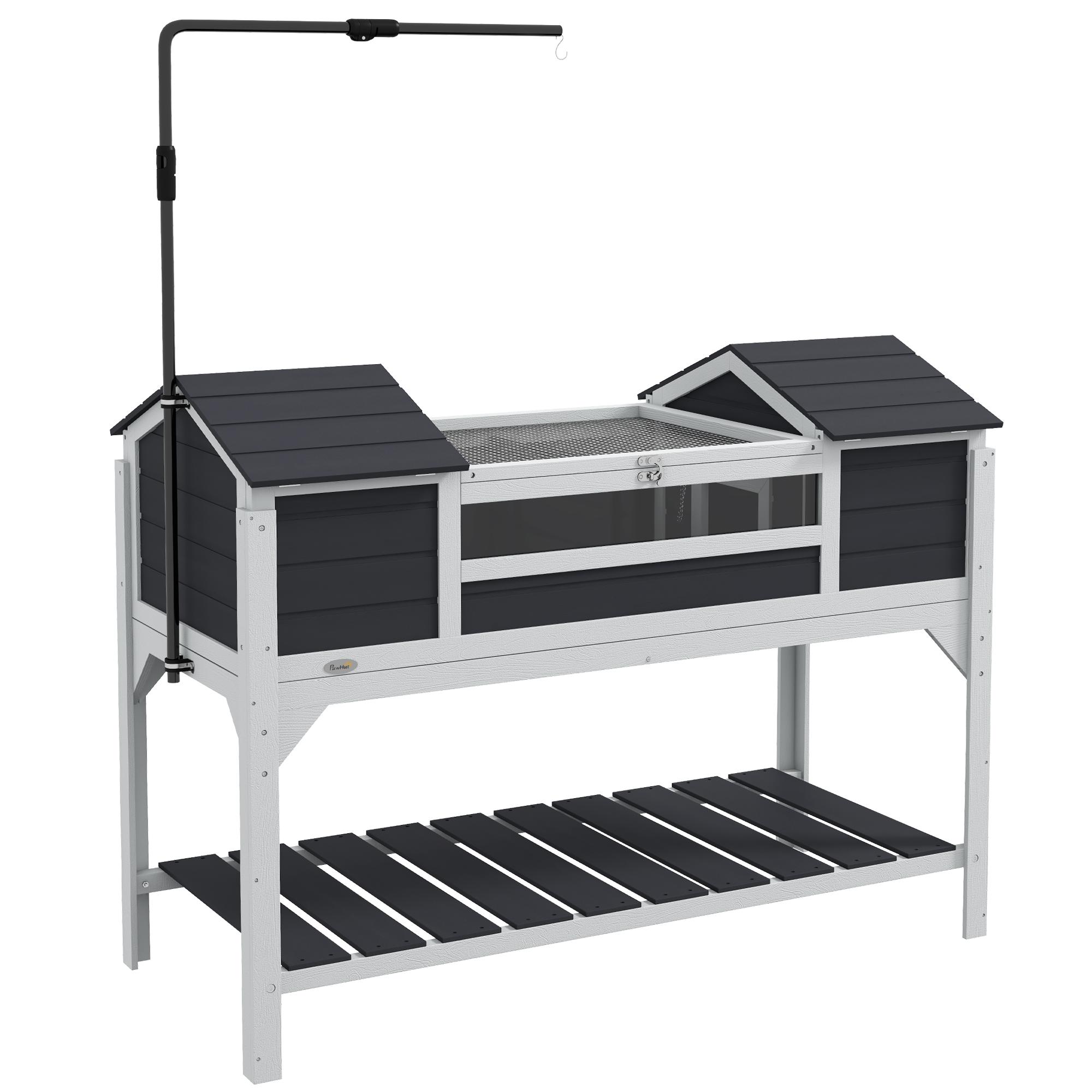 Terrarium maison tortue terrestre - enclos tortue 2 niches, support lampe réglable, toit ouvrable, étagère - bois blanc gris