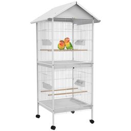 Volière cage à oiseaux sur roulettes design maison mangeoires perchoirs 10 portes plateaux excréments amovibles acier blanc
