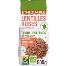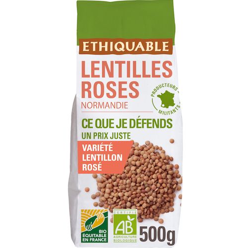 Ces lentilles rosées, assez fermes et prêtes en 20 minutes, offrent une texture plus consistante que la lentille corail. Leur couleur saumonée et leur saveur douce légèrement sucrée en font un ingrédient idéal pour les salades, les accompagnements de petit salé ou de poisson, ainsi que les veloutés colorés. Issues de l’agriculture biologique et du commerce équitable français, elles reflètent un modèle agricole durable porté par les producteurs normands de Biocer, engagés en agroécologie.