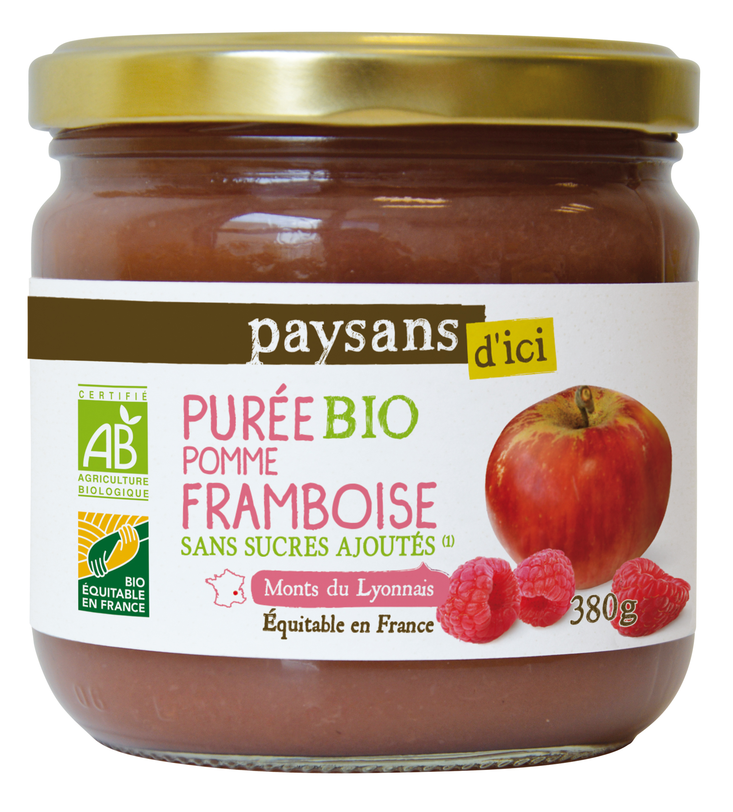 PUREE DE FRUITS POMME FRAMBOISE MONTS DU LYONNAIS BIO 380G