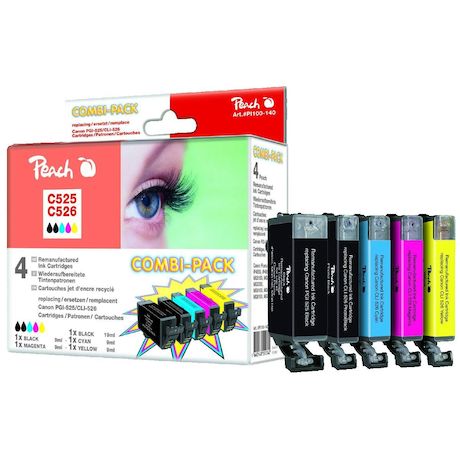 Le kit de cartouches d'encre Peach PI100-140 est spécialement conçu pour les imprimantes Canon compatibles avec les références PGI-525 et CLI-526. Ce pack contient 5 cartouches de haute qualité : noir, noir photo, cyan, magenta et jaune, assurant des impressions nettes et éclatantes. Chaque cartouch