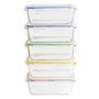Pebbly PKV-5SRB 5 boîtes rectangulaires Batch Cooking de Pebbly PKV-5SRB. Un set complet de 5 boîtes en verre avec un joint silicone coloré pour transporter sans risque de fuite vos préparations maison !.