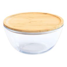 | Descriptif | Pour la préparation et la conservation Verre borosilicate résistant aux chocs thermiques Vont au four et micro-ondes (sans les couvercles) Couvercles hermétiques en bambou avec joint en silicone amovible Sans BPA Dim Ø 19 x 11 cm | |