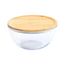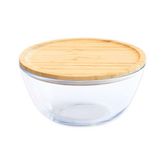 Descriptif | Pour la préparation et la conservation Verre borosilicate résistant aux chocs thermiques Vont au four et micro-ondes (sans les couvercles) Couvercles hermétiques en bambou avec joint en silicone amovible Sans BPA Dim Ø 15 x 9 cm | |