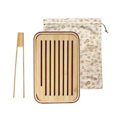 Pebbly NBA185 La planche à pain Pebbly NBA185 de ce coffret présente des bords peints en chocolat. Cette couleur tendance apportera une touche chaleureuse et élégante à votre table ou plan de travail. Elle est également dotée d'une encoche pratique permettant de soulever la grille et de récupérer plus facilement les miettes. La pince à pain est en bambou naturel, ce qui vous permet de saisir facilement votre pain dans le grille-pain sans vous brûler les doigts. Le sac à pain en coton bio est idéal pour transporter et conserver votre pain plus longtemps.