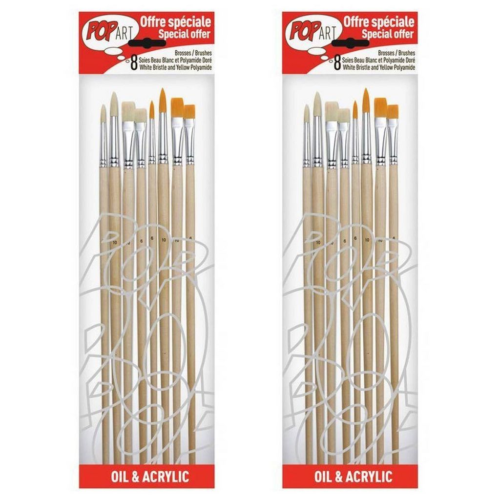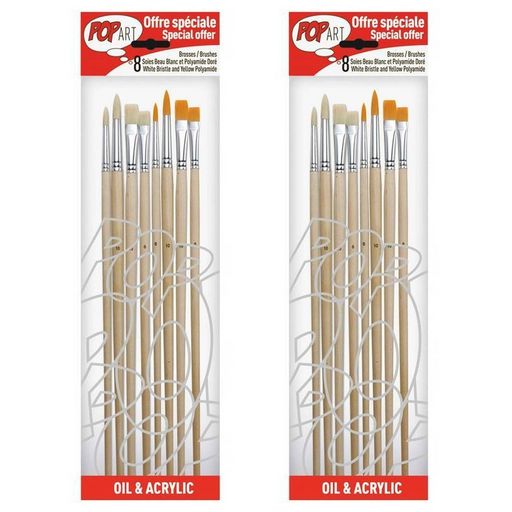 2 kits de 8 pinceaux - Réalisez des détails précis avec cet assortiment de pinceaux en polyamide et en soie ! A utiliser avec de la peinture à l'huile ou de la peinture acrylique.