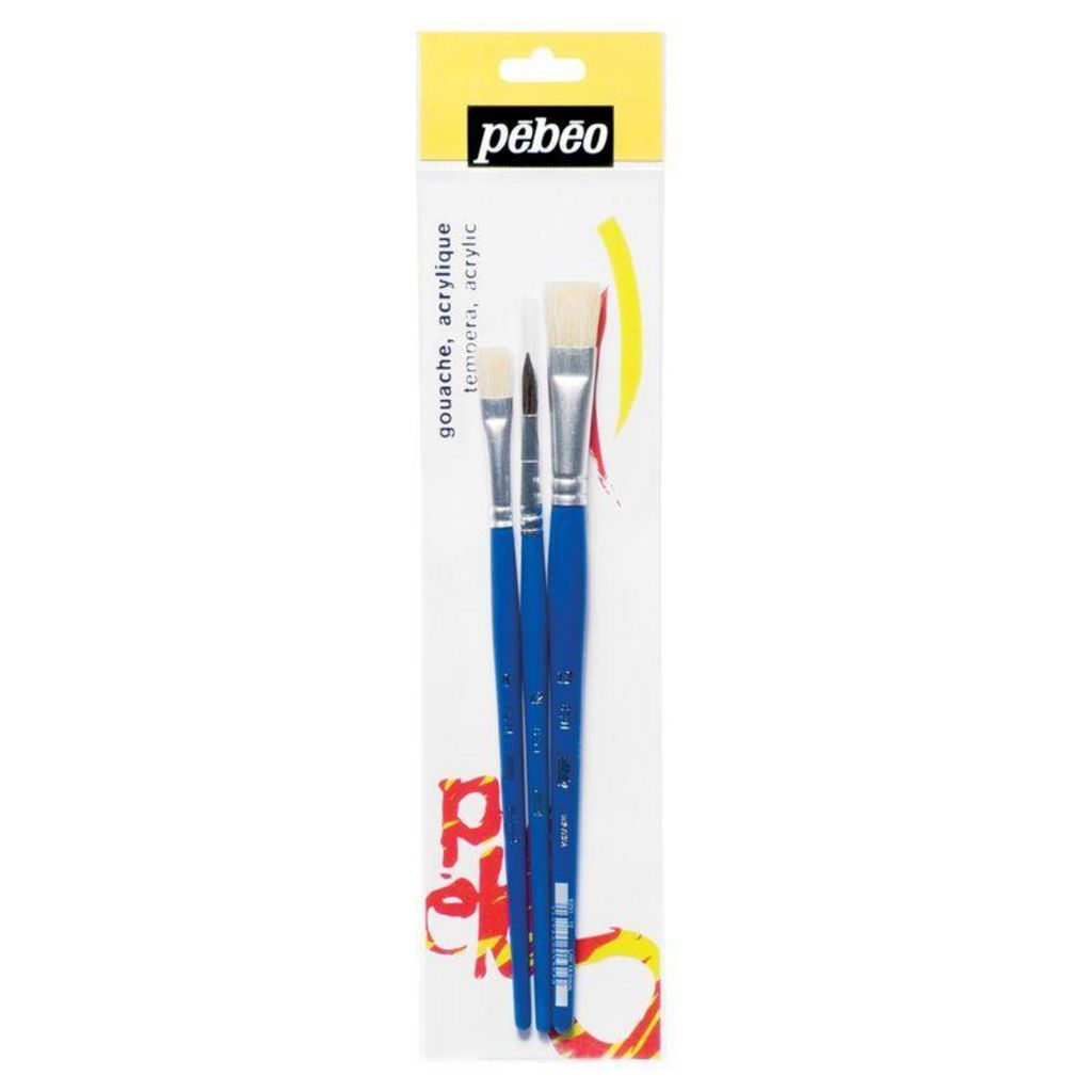Set de 3 pinceaux ronds et plat à poil dur